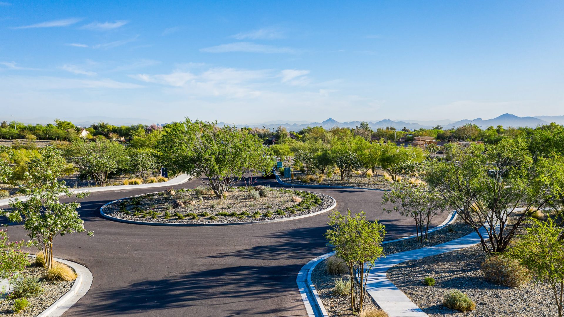 A tranquil urban oasis is fostered by canopies of palm trees floating above pools of water, pathway plantings feature climate appropriate specimens selected for their sculptural and textural qualities. Raised planters, olive trees and outdoor fire pits are arranged effortlessly to provide lounging areas for visitors to gather and relax. Green walls and trees planted on structure are strategically integrated into the design, and hanging planters featuring a variety of aromatic plants and flowers provide visual, vertical appeal.